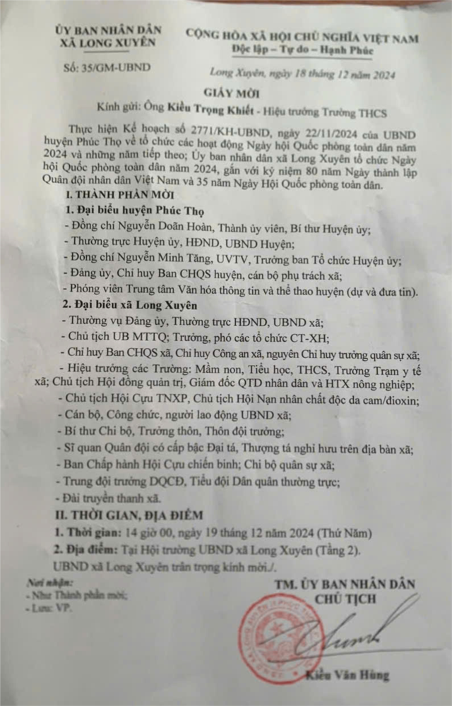 • Giấy mời tham gia tập huấn y tế và PC dịch bệnh
